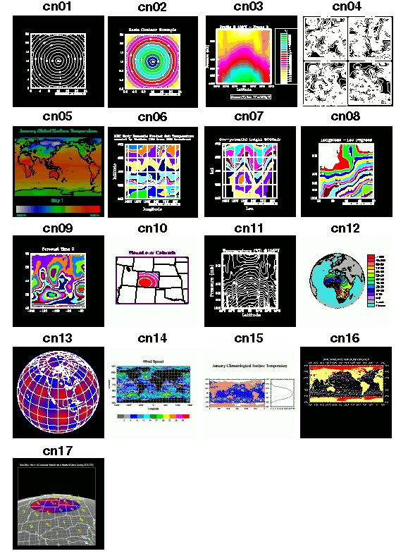 This module is a graphical index to the HLU and NCL NCAR Graphics examples that generate contour plots. Click on one of the example graphics below to link to information about how to create the graphic and how to access the code and data that were used to generate the plot.