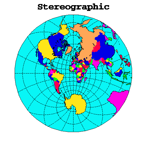 This mapping example was created using HLU C library calls, HLU FORTRAN library calls, and NCL. It demonstrates how to create the ten different map projections, with and without color fill. The names of the source files for this example are mp05c.c, mp05f.f, and mp05n.ncl.