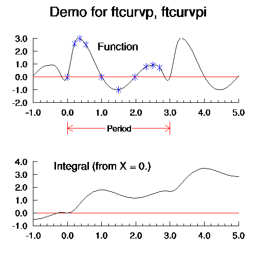 This example can be created using NCL. It demonstrates how to use the Fitgrid package to compute a periodic interpolatory spline under tension through a sequence of functional values (Fitgrid is part of the Ngmath library). Integrals of the interpolatory spline are also calculated. The name of the source file for this example is nm08n.ncl.