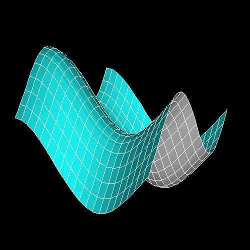 This example can be created using NCL. It demonstrates how to use the Fitgrid package to calculate an interpolatory surface passing through a rectangular grid of functional values (Fitgrid is part of the Ngmath library). The generated surface can be represented as a tensor product of splines under tension. The name of the source file for this example is nm12n.ncl.