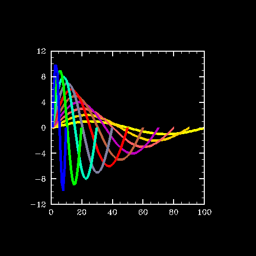 This example can be created using HLU C library calls, HLU FORTRAN library calls, or NCL. It demonstrates how to create a plot that contains multiple lines using a CoordArrTable object (C version only). The names of the source files for this example are xy05c.c, xy05f.f, and xy05n.ncl.